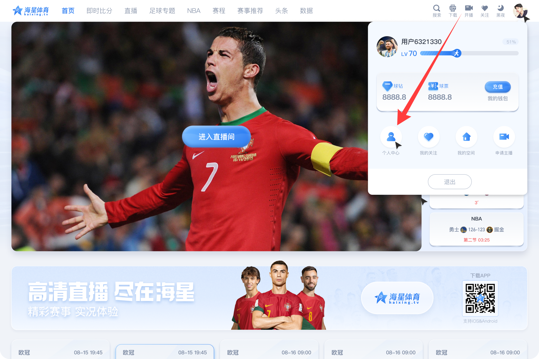 3.配置服务器及串流密钥:进入自己的个人中心将推流地址复制在obs推流地址中;